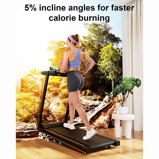 DeerRun 3.0 HorsePower Folding Treadmill APP Control , 300LB Walking Pad Running Data Analysis, Gift Smart Treadmills ,BlackRed
