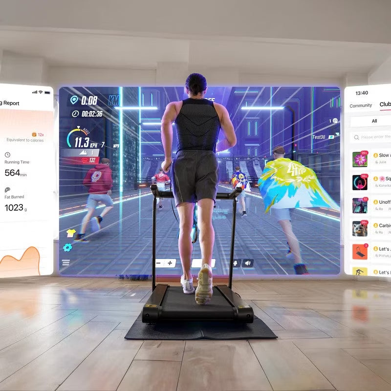 Professional home model with 400Lbs capacity. 15% incline for varied workouts. Includes folding workstation. Quiet operation with PitPat connectivity. Folds to 7.32" thin—fits seamlessly under sofas, in closets, or against walls. Zero space wasted. Built-in wheels for easy storage. Train hard, store smarter. Brushless Silent Motor: Quiet Power No more clunky hums disrupting your space. Our brushless silent motor cranks out steady speed—whether you're jogging easy or sprinting hard—without the racket. Workout while the kids nap, blast your playlist, or catch up on a podcast. Power meets peace and quiet. Front Roller Design: Move with Ease Need to shift your treadmill? The front rollers make it a breeze. Glide it across the room, tuck it into a corner, or rearrange your space—no heavy lifting, no hassle. Just smooth, simple mobility whenever you need it. Shock-Absorbing Pedals: Cushioned Comfort Say goodbye to the harsh thud of each step. Our shock-absorbing pedals act like a buffer, taking the edge off every stride. Whether you're jogging easy or pushing the pace, your knees and joints get a break—so you can keep going longer, with less soreness. It's smooth, it's kind, it's how running should feel.