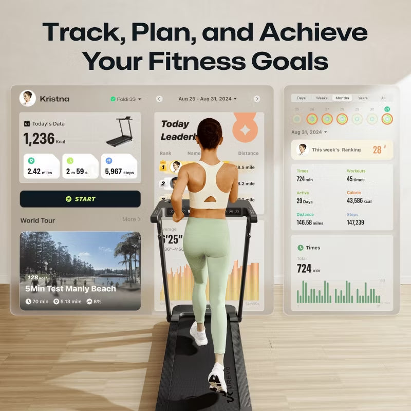 AI-Powered Fitness with UREVO SmartCoach App: Enjoy immersive runs, real-world map workouts, and live coaching with four training modes, all accessible through the UREVO App on your device.